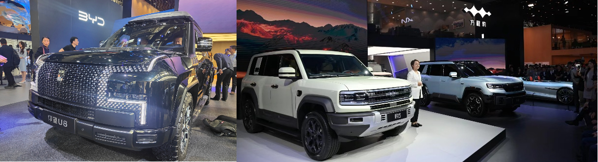 左:2024北京車(che)展(zhan)仰望展(zhan)檯(tai)(圖源網絡) 右:2024北京車(che)展(zhan)方(fang)程(cheng)豹展(zhan)檯(tai)(圖源網絡)